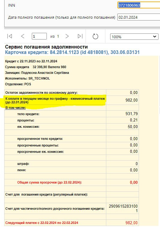 2. Дивимось на дату щомісячного платежу. (скрин 1)